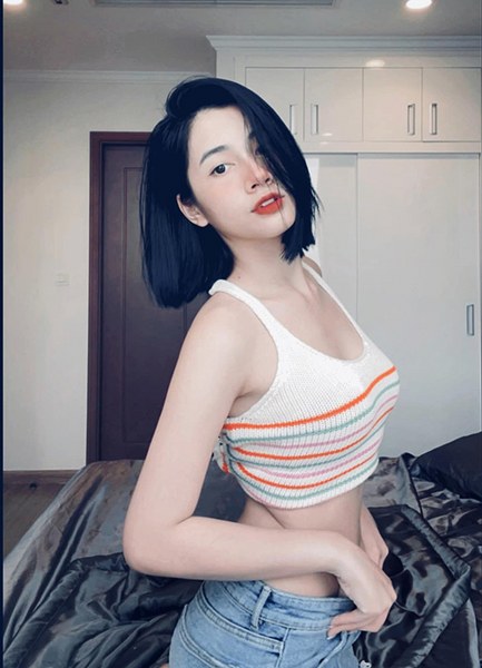 Người đẹp Cẩm Đan thường xuyên sử dụng áo hở eo, quần short để tôn chiều cao và khoe đường cong cuốn hút.