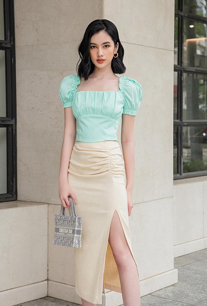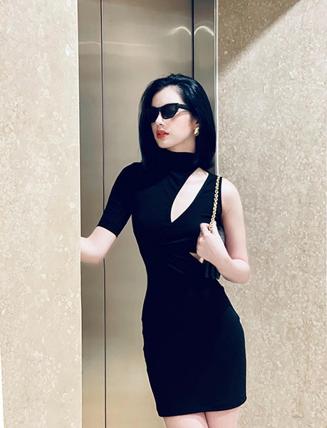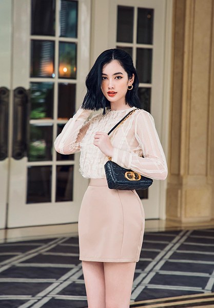 Khi không chọn váy ngắn qua gối để ‘kéo dài’ chân thon, Cẩm Đan lại sử dụng đầm bút chì với đường xè tà bắt mắt để mix đồ street style.