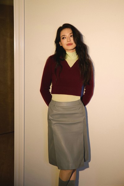Thư Kỳ theo mốt tóc ngắn khi dự show của Bottega Veneta.