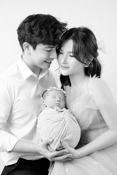 Ca sĩ Thu Thủy cùng ông xã Kin Nguyễn khoe con gái Lana hơn một tháng tuổi trong bộ ảnh mới.