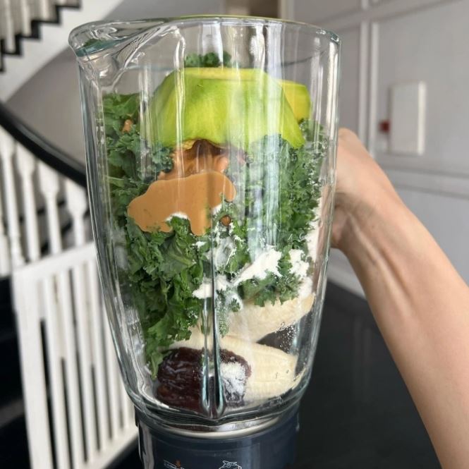 Sinh tố chứa các loại rau xanh là cách lý tưởng để bổ sung chất xơ cũng như các loại vitamin, chất chống oxy hóa cho cơ thể. Các loại rau thường được thêm vào sinh tố có thể kể đến như: cải bó xôi, kale, súp lơ xanh, cần tây,... kết hợp với các loại trái cây như chuối, quả bơ, thanh long, giúp bữa sáng no lâu, giàu dinh dưỡng, tốt cho tiêu hóa. Để tiết kiệm thời gian, bạn nên sơ chế trước các nguyên liệu, bảo quản ngăn mát, từ tối hôm trước.