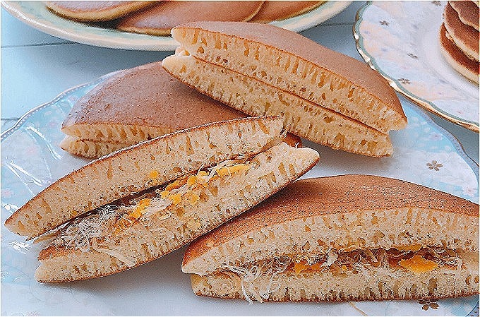 Thử sức với bánh bột mì rán, nhân ruốc trứng muối giống như chiếc bánh rán của Doremon.