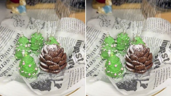 Vậy là bánh cây thông và trái thông của bạn đã hoàn thành rồi đấy. Bạn hãy rắc thêm chút đường bột lên trên để trang trí bánh nha!