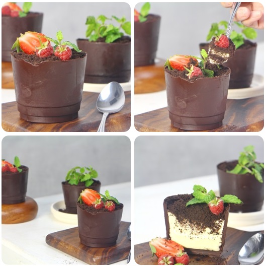 Nếu bạn đang cần một món tráng miệng ngon và mới lạ cho các buổi tiệc thì đừng bỏ qua công thức sau đây nhé, đó là bánh chậu cây kem phô mai, với phần vỏ chậu cây bên ngoài làm từ socola, nhân kem vị phô mai béo béo, thêm lớp bánh oreo trên mặt rất hấp dẫn. Chắc chắn tất cả mọi người sẽ thích thú và ngạc nhiên với những chậu cây dễ thương.