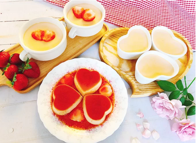 Hãy biến tấu món bánh flan truyền thống bằng bánh flan vị dâu tây đẹp mắt ngon miệng.