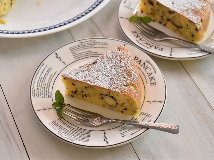 - Khi thấy bánh chín thì lấy ra, lật úp lại, rắc đường tuyết lên (đường bột không tan) vào là xong.