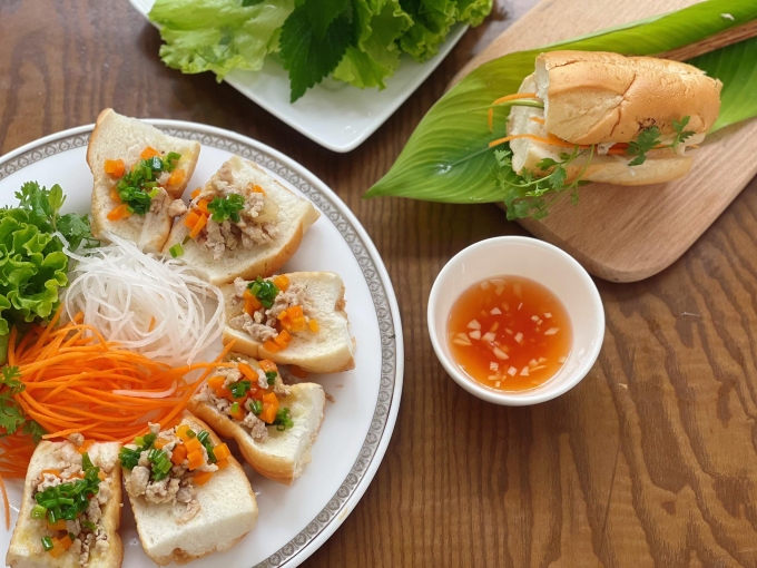 Bánh mì hấp thịt chín tới còn nóng thơm phức, bánh dẻo mềm, thêm nhân thịt ngon ngọt, gói trong một lá xà lách kèm ít đồ chua chấm vào bát nước mắm cay cay... đảm bảo khiến bạn ăn không ngừng.