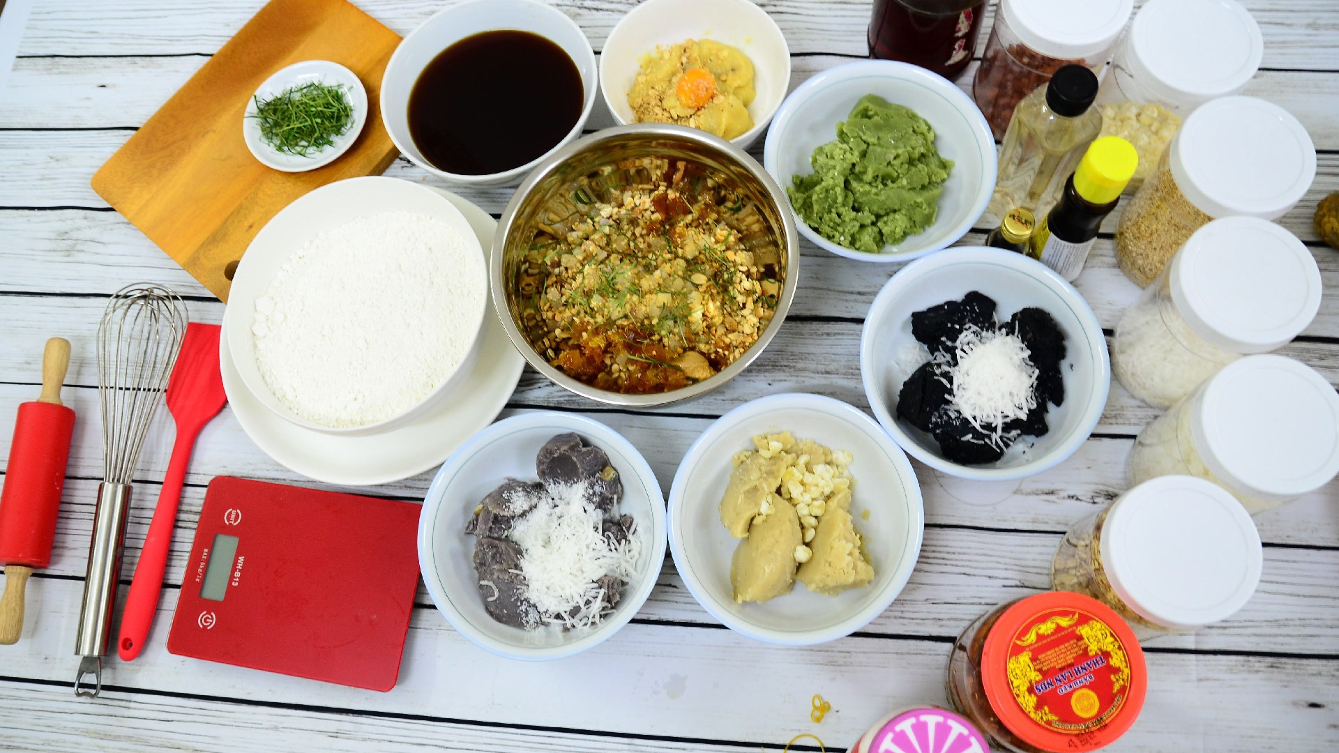 – Nặn bánh theo thỉ lệ 1 vỏ 2 nhân