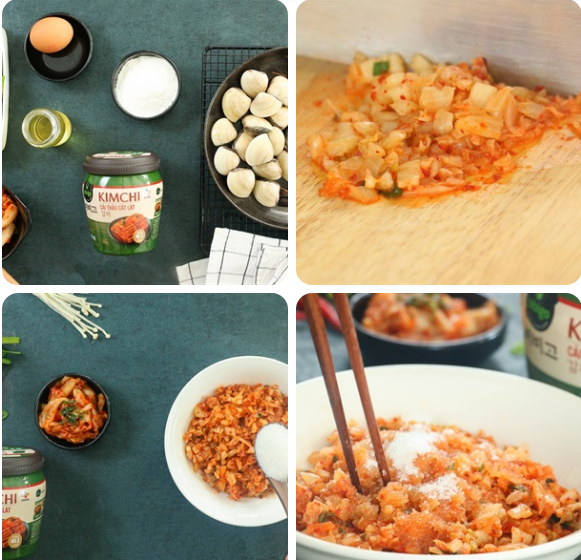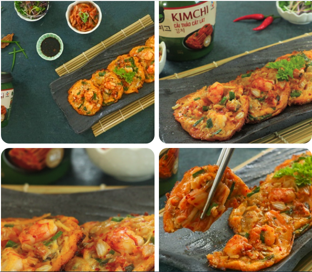 Bánh xèo kim chi hải sản là món ăn phổ biến trong những bữa cơm gia đình Hàn Quốc. Sở dĩ bánh này được yêu thích như vậy cũng vì sự ngon miệng mà nó mang lại, vỏ bánh giòn rụm kết hợp với hải sản tươi ngon, xen kẻ là nấm kim châm dai dai và kim chi chua cay hấp dẫn.