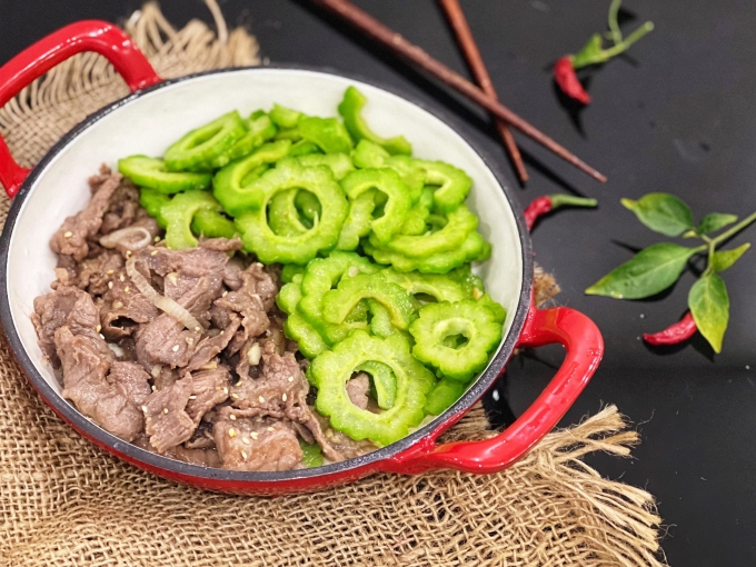 Bò né khổ qua vừa quen vừa lạ, thịt bò mềm ngọt, ăn cùng với khổ qua giòn ngon, đắng nhẹ, thanh mát.