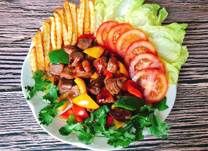Bò xào lúc lắc là món đơn giản, dễ ăn, có thể kèm khoai tây rán, bánh mì hoặc cơm trắng đều được.