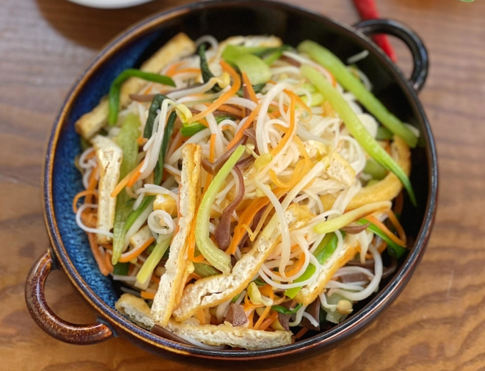 Bún gạo xào chay có màu sắc bắt mắt. Sợi bún mềm tơi, không bị nhão, rau củ vừa chín tới, giòn ngọt, giữ được lượng vitamin và màu sắc ngon mắt. Nước xốt đậm đà, thấm vị. Đây là món ăn lành tính, ngon miệng và đầy đủ dinh dưỡng. Bạn có thể tận dụng bất kỳ loại rau củ nào theo mùa hoặc sẵn có trong gia đình, vừa ngon lại vừa tiện.