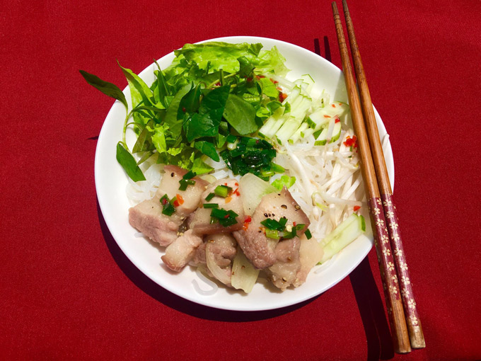Các loại bún thịt nướng đã quen thuộc thì bạn có thể thử món bún thịt ba chỉ lợn xào, chế biến nhanh mà ngon miệng.