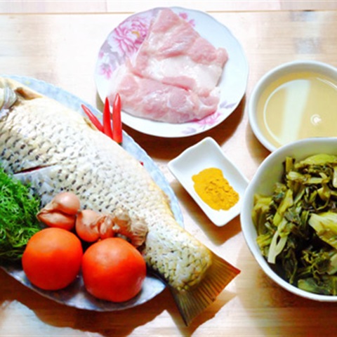 Nước om dưa sôi bạn cho cá chép, tóp mỡ và ít bột nghệ (hoặc nghệ tươi giã dập) để om cùng.