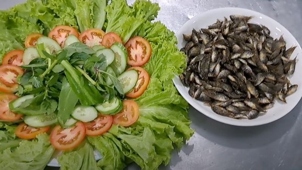 Rau xà lách, các loại rau ăn kèm như rau thơm, rau diếp cá, húng quế,...