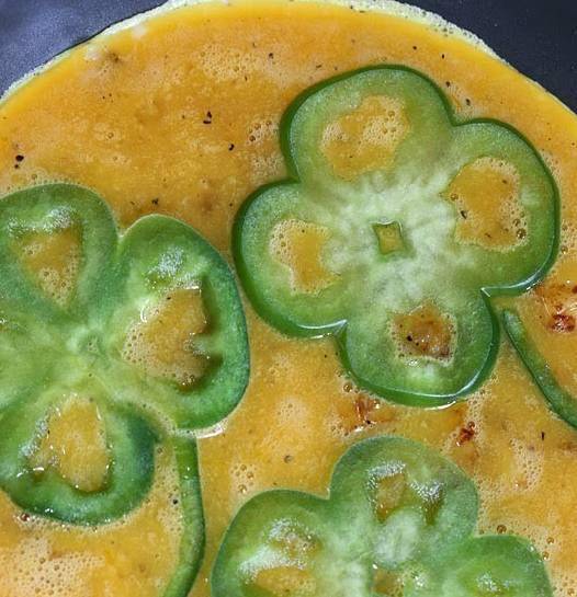 Ớt chuông xanh, khoai tây, trứng, dầu, gia vị và hạt tiêu.