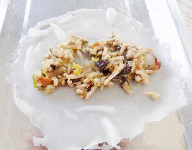 Cho nhân vào giữa, cuộn tròn hoặc gập lại tùy theo sở thích rồi xếp bánh ra đĩa.