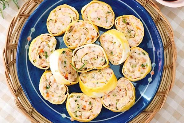 Món trứng cuộn tôm hấp vừa đẹp mắt lại lạ chắc chắn sẽ khiến các chị em thi nhau trổ tài.