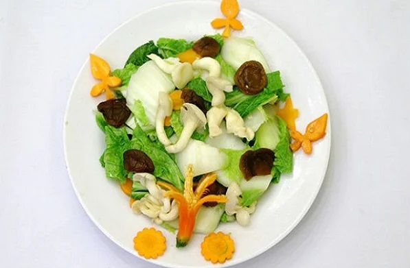 Bước 7: Bày cải thảo nấm ra đĩa, trang trí thêm vài lát cà rốt hoặc ớt để đẹp mắt và rồi thưởng thức khi nóng thôi nào.