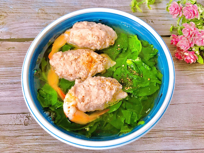 – Đun sôi nước cho từng viên mọc tôm vào, hạ lửa vừa. Nêm thêm muối, hạt nêm, nước mắm cho vừa miệng. Vớt bọt thường để canh được trong hơn. Cuối cùng thả rau vào, nước sôi lại thì tắt bếp. Thêm hành tiêu vào.