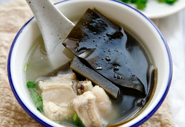 Miếng rong biển giòn dai, sần sật, sườn mềm đậm đà, nước dùng ngọt thanh, có thể dùng làm món khai vị hay ăn nhẹ.