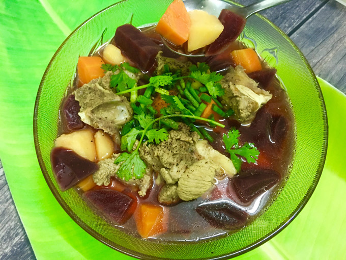 Món canh xương hầm củ dền có vị ngọt thanh, mùa nào cũng hợp.