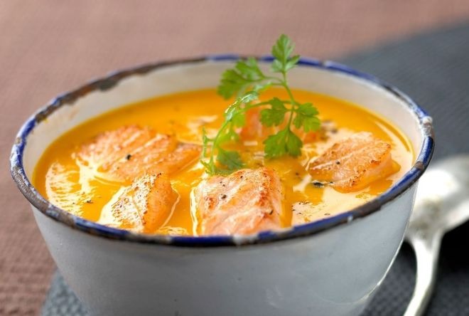 Món cháo cá hồi bí đỏ mang đến bữa ăn bổ dưỡng cho cả gia đình mà khiến cho các bé cũng thích mê.