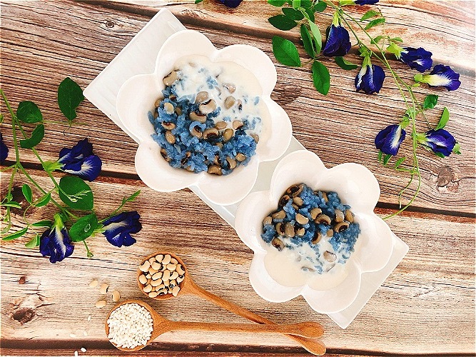 – Hoa đậu biếc và sầu riêng (có thể bỏ qua hai nguyên liệu này).