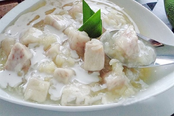 Khi ăn thì múc một chén chè nhỏ, rưới nước cốt dừa lên trên là thưởng thức.