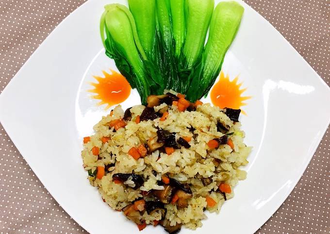Thêm cơm vào, nêm nước tương và đảo đều tay trong 5 phút.