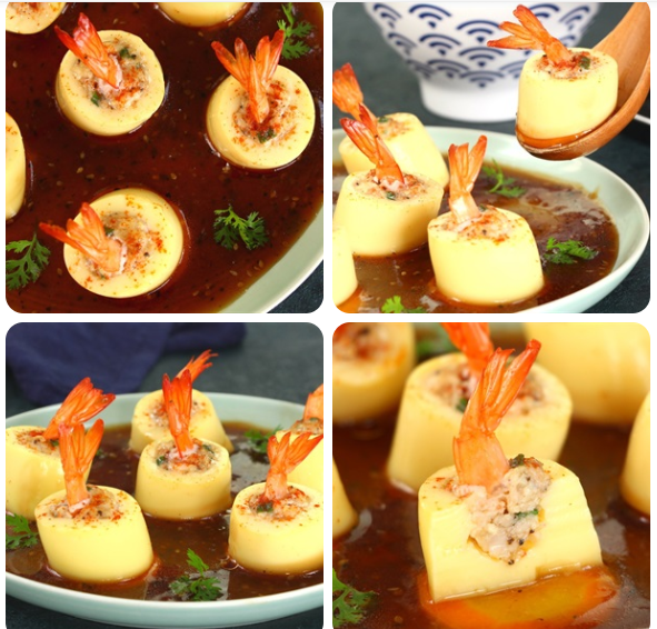 Đậu hũ là một món ăn quen thuộc, có thể chế biến cả chay lẫn mặn. Món đậu hũ trứng hấp tôm vừa đẹp mắt, vừa ngon miệng bởi sự hòa quyện tuyệt vời giữa vị béo của đậu hũ và vị ngọt của tôm.
