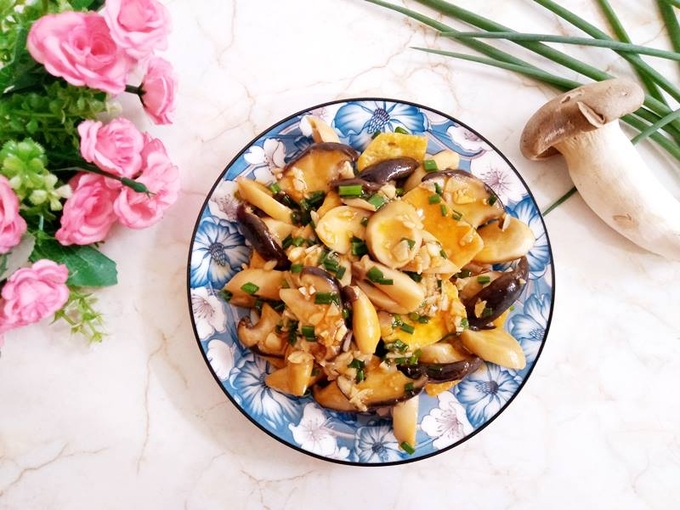 Nấm đùi gà sơ chế sạch, thái lát. Đun nóng chút dầu ăn trong chảo, cho một ít tỏi băm vào xào thơm, tiếp đó cho nấm và một chút nước vào xào để nấm chín mềm.