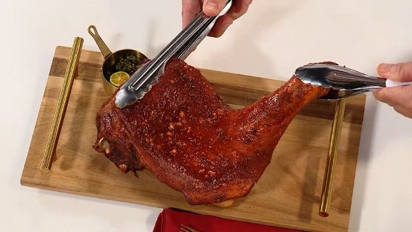 Đùi dê được tẩm ướp nhiều loại gia vị, thịt dai, ngọt đậm đà, lớp da giòn rụm màu nâu cực bắt mắt. Món đùi dê quay này đủ đánh gục mọi tín đồ ẩm thực. Khám phá công thức làm đùi dê quay ngay nhé!