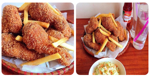 Miếng gà rán giòn rụm bên ngoài nhưng lại ẩm và nóng thịt bên trong chắc chắn không thua gì những nhà hàng sang trọng. Cuối tuần làm ngay bữa tiệc gà rán này cho mấy nhóc nhỏ thì còn gì tuyệt vời hơn nữa.