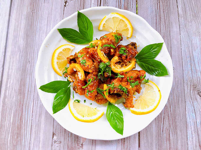 Món gà sốt chanh vàng thơm lừng kèm nước sốt chua ngọt lạ miệng rất hợp cho bữa cơm đãi khách.