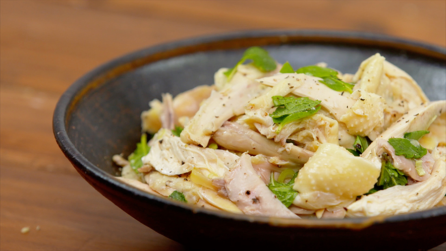Bạn có thể tận dụng thịt gà thừa khi cúng để làm món gà xé phay chống ngán này.