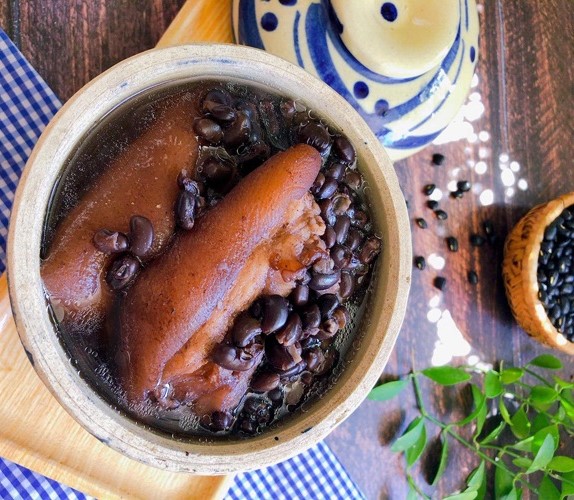 Giò heo hầm đậu đen bùi bùi, là món canh bổ dưỡng, dễ ăn, phù hợp trong ngày những ngày trời mát mẻ.