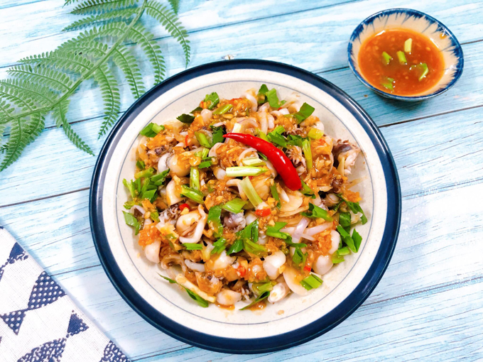 Món gỏi mực nút giòn giòn, thơm ngon vừa miệng có thể làm món khai vị hoặc món nhắm đều rất tuyệt.