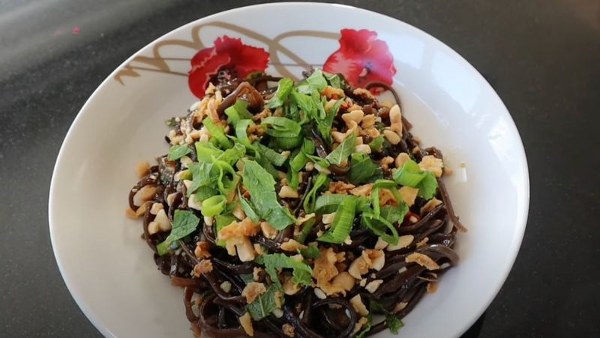 Chỉ với vài bước đơn giản là bạn đã hoàn thành món gỏi nấm mèo. Cho nấm mèo ra dĩa, cho thêm ít đậu phộng rang lên trên là có thể thưởng thức.