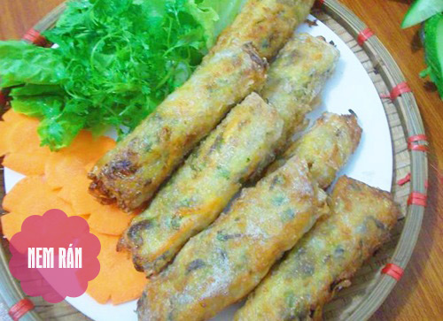 Thực hiện: Cà rốt nạo sợi, nấm hương, mộc nhĩ ngâm cho nở, băm nhỏ. Trộn thịt xay chung với các nguyên liệu vừa chuẩn bị cho thêm một chút gia vị, đập trứng vào trộn đều. Trải bánh đa nem ra thớt, dùng nước giấm loãng thoa đều lên vòng quanh bánh đa, cho nhân vào giữa, gấp 2 bên lại, cuộn tròn, làm lần lượt đến hết. Nem cuốn vừa phải, đều tay không to quá, không nhỏ quá, vừa ăn. Trong khi vừa cuốn nem vừa bắc bếp, để dầu sôi. Vừa cuốn nem, vừa thả dần nem vào chào. Bạn nên rán 2 lần ngập dầu, lần 1 để lửa nhỏ cho nem chín, lần 2 sẽ rán lửa to để nem giòn. Sau khi rán để nem cho ráo mỡ và gắp ra đĩa.