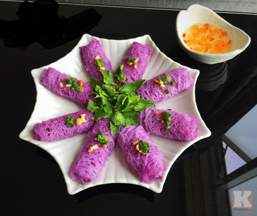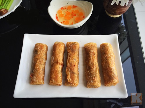 Nguyên liệu: 20g miến dong, 1 tai mọc nhĩ, 1 thếp bánh đa nem; 20g đậu xanh không vỏ; 50g khoai môn; 1/2 củ cà rốt, 1 củ đậu nhỏ (khoảng 50g), hành lá; Bột nêm chay, tiêu, chanh, ớt, giấm, đường, muối, 1 thìa bột chiên giòn hay bột mì đều được.