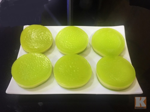 Bắc xửng hấp, cho khuôn bánh có tráng một lớp dầu ăn vào cùng. Khi khuôn nóng cho một lớp bột màu xanh vào trước, đậy nắp lại hấp khoảng 5 phút. Sau đó cho tiếp một lớp bột màu vàng vào hấp khoảng 6-7 phút. Tiếp đó cho thêm 1 lớp bột màu xanh vào, hấp thêm khoảng 10′ nữa bánh chín là được. Bạn có thể làm nhiều lớp hơn tuỳ thích.