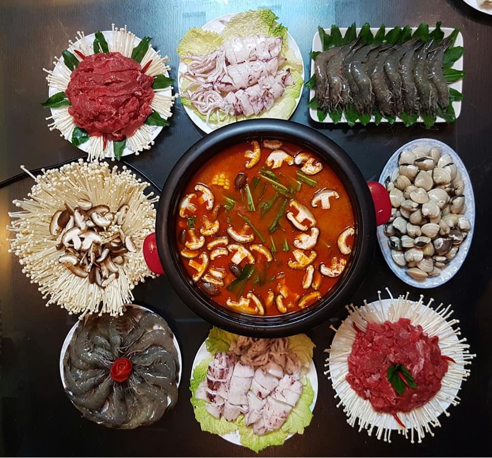 Lẩu thái thích hợp với các loại hải sản: tôm,cá,mực,ngao,sò…