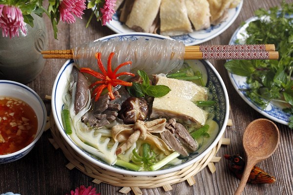 Thịt vịt mềm ngọt, nước dùng hài hòa vị, măng tươi giòn sần sật, miến trong dai thu hút từ cái nhìn đầu tiên.
