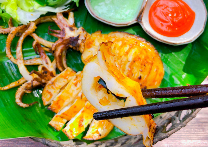 Những ngày cuối tháng âm lịch rất thích hợp để \"xả xui\" bằng món mực nướng sa tế.