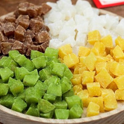 Với chút sáng tạo nho nhỏ bạn đã có món mứt dừa viên bốn màu vừa ngon, vừa đẹp để đãi khách Tết này rồi. Mứt dừa viên khi ăn sẽ không bị quá ngọt như mứt dừa sợi. Màu sắc mứt dừa viên lại rất bắt mắt từ những loại rau củ quả.