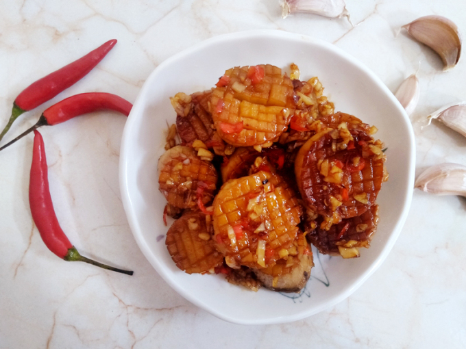 Từng miếng nấm đùi gà giòn giòn, ngọt ngon, thơm mùi bơ tỏi, hợp nhất ăn cùng cơm trắng.