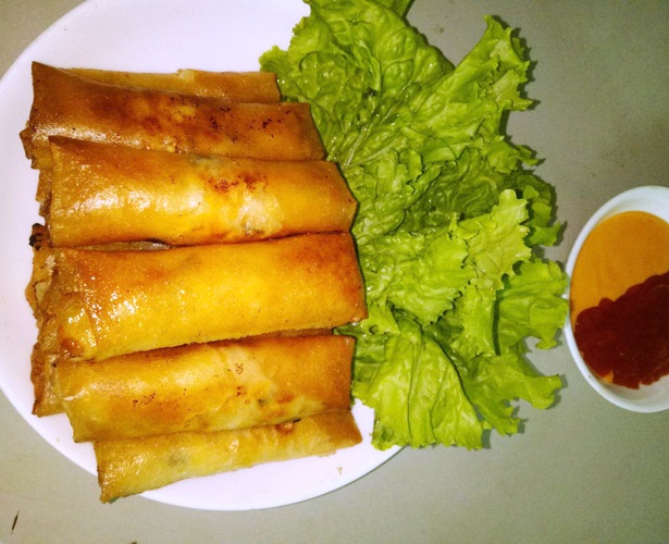 – Chiên trên lửa nhỏ, tới khi nem vàng thì vớt ra. Ăn cùng với tương ớt.