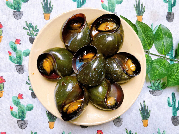 Thịt ốc bươu dai giòn sần sật thấm vị tiêu đen thơm lừng, đậm đà.
