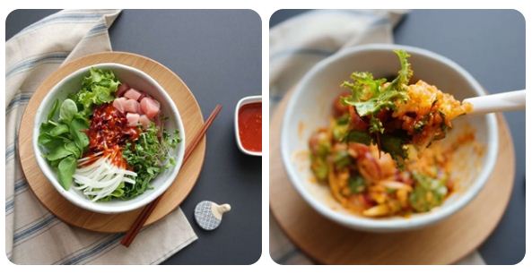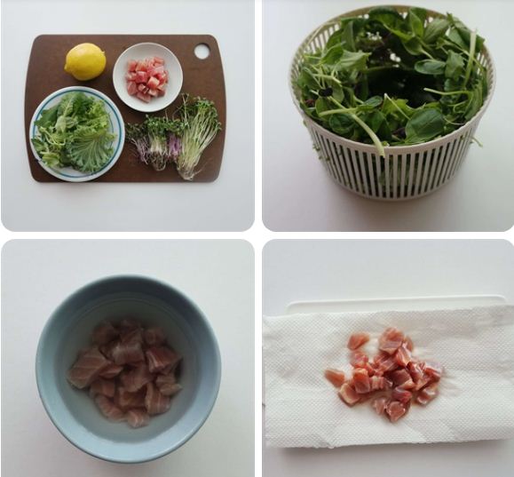 Salad cá ngừ trộn rau cải với thịt cá ngừ đông lạnh được rã đông, thái viên nhỏ vừa ăn, trộn cùng rau xanh và hỗn hợp sốt trộn chua cay, mặn ngọt đậm đà. Giúp bạn ăn ngon miệng mà không ngại tanh cá đâu nhé!
